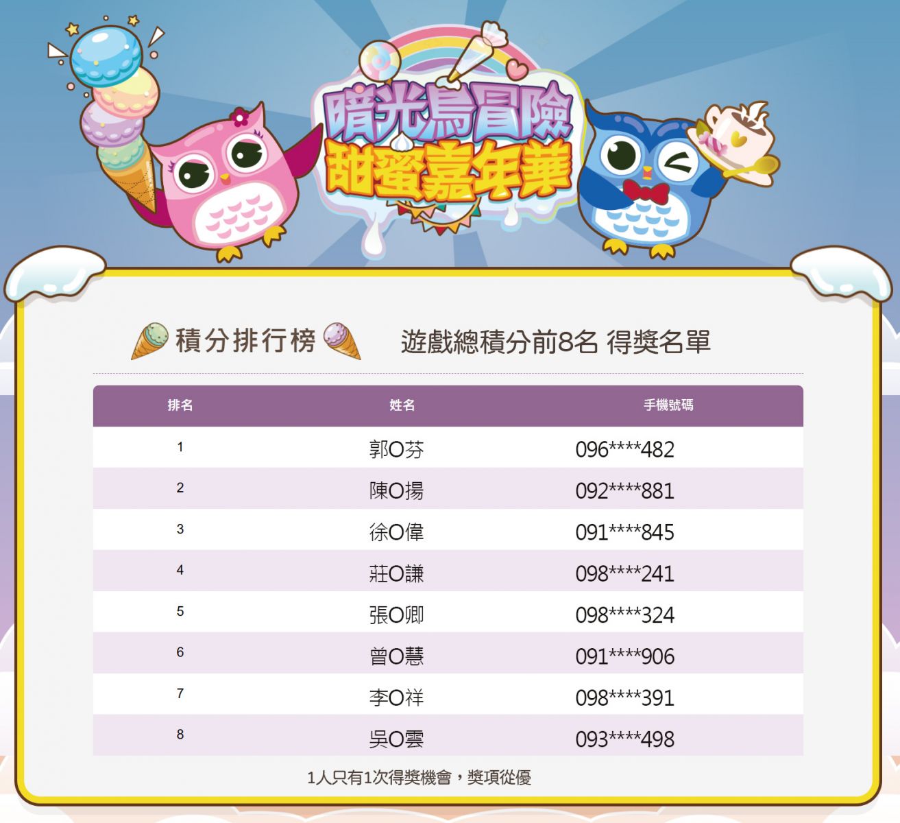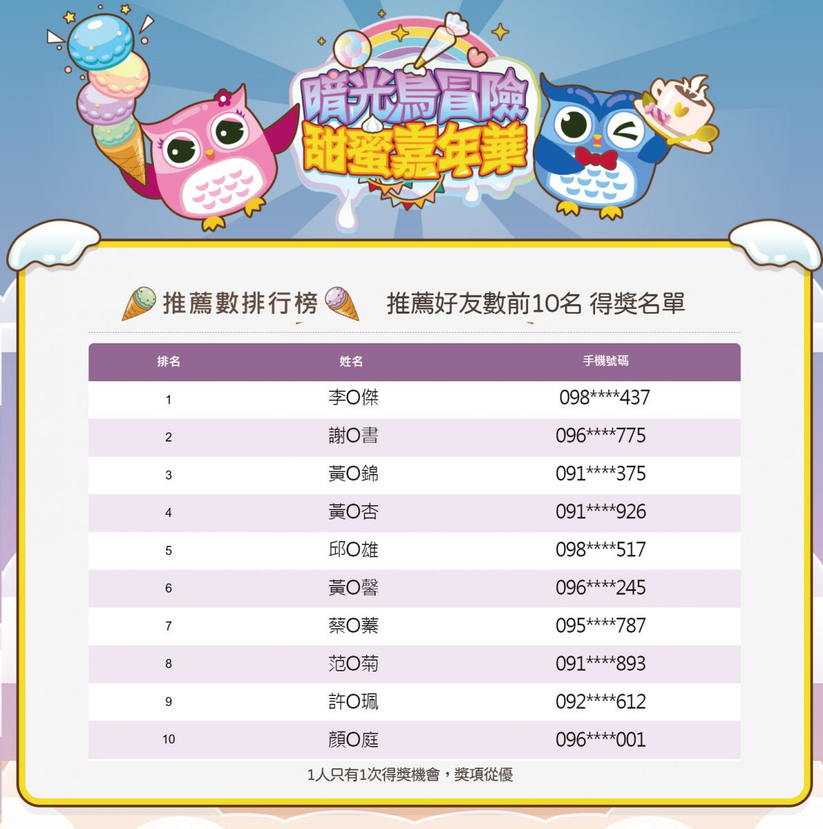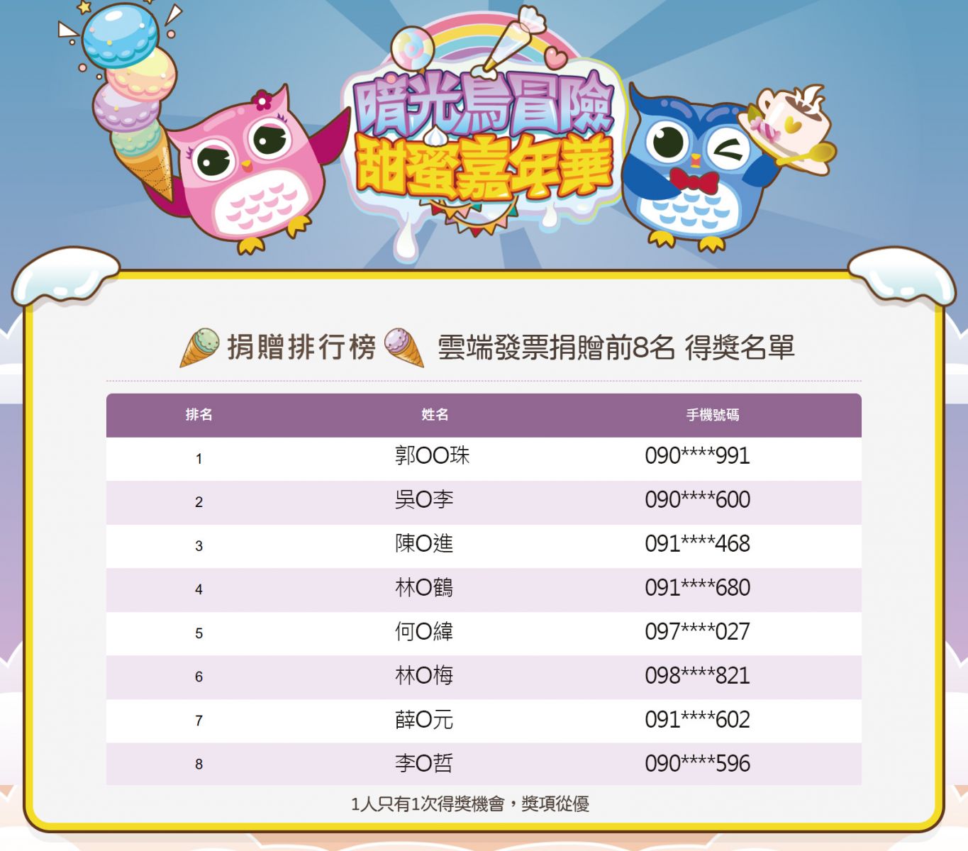 活動得獎名單公布-感謝大家的參與~